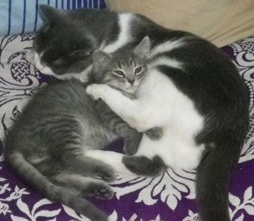 This has repeated over several times in the past two days. Now, they walk together, sit together to watch TV, feed together and even sleep together, cuddling each other.