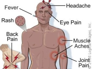 Dengue fever is a flu kind of illness spread by bites of female Aedes mosquito. This mosquito bites the infected person and then bites someone else who is not affected thus transmitting the infection. These mosquitoes are active during the day time and at night when the lights are on. These mosquitoes live among human beings and breed in discarded tyres, flower pots, water stores etc.